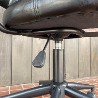 レトロなヴィンテージ調のスタディチェア。以前はデスクチェアとしての使用が多いこのタイプの椅子ですが、最近はオフィスの会議用としても、また家庭でダイニングテーブルと組み合わせてなど色々なシチュエーションでの使用が増えています。◎ゲイズ スタディチェア■カラー:ブラック■素材 :座面 合成皮革/脚 スチール■サイズ:幅560×奥行610×高さ860mm 肘高 座面より200mm 座面 一番高くした状態530mm 一番低くした状態430mm