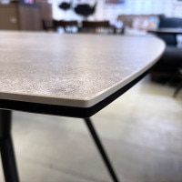 コンクリート(モルタル)風のイメージをセラミックに施したダイニングテーブル セラミックは、高温で焼き上げた100%天然素材の焼き物です。 鉱物を粉末や砂状にしたものを配合し、陶磁器やホーローの表面にも覆われている ガラス質の膜「釉薬」を重ねて焼き上げています。 長時間の焼成サイクルにより、熱や傷、汚れに強い素材に仕上がっていきます。 セラミックの特徴として