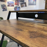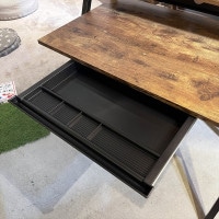 シンプルですが実用性の高いヴィンテージ系デスク。バラバラになりやすいコードなどをコード穴にまとめておくことで、デスク上もすっきりと出来ます。デスクの足が斜めなので椅子を回転させてスムースにデスクに向かえるデザインです。