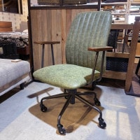 縦ラインがアクセントのビンテージチェア艶のないPU合皮を採用 肘置きの木部と相まって大人の渋みのあるオフィスチェアにしました。 書斎や個人スペースの空間にぴったりのデスクチェアとなっております。 キャスターにもこだわりがあり他のチェアとは別のかっこよさがあります